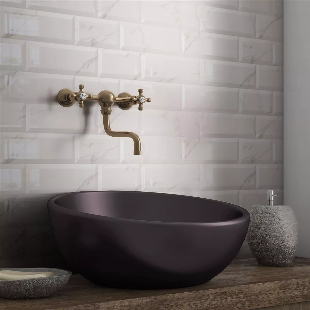 The Metro wall tiles Girona marble look facet glossy combine classic design with modern functionality and are an enrichment for every interior.