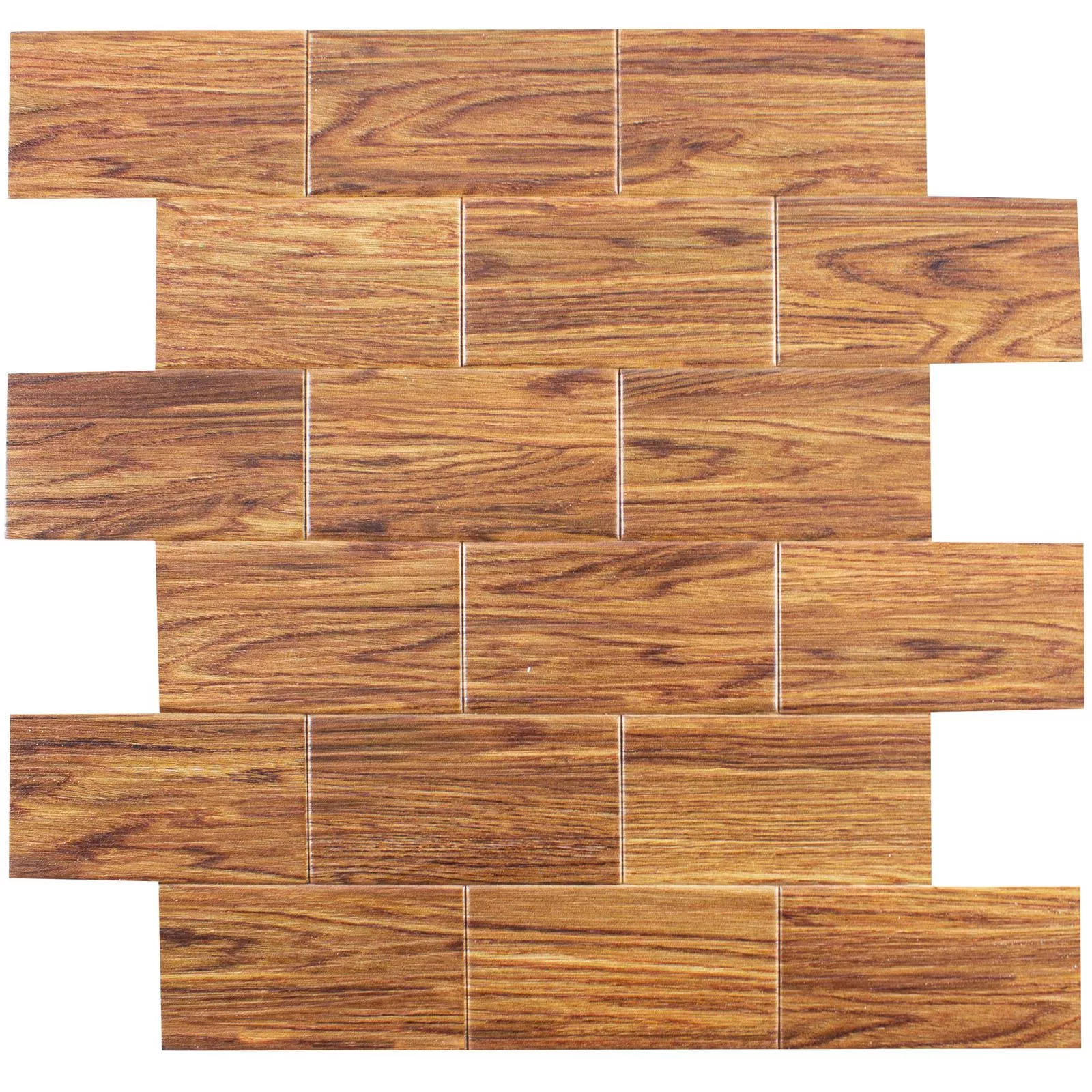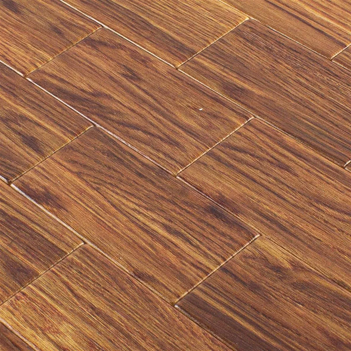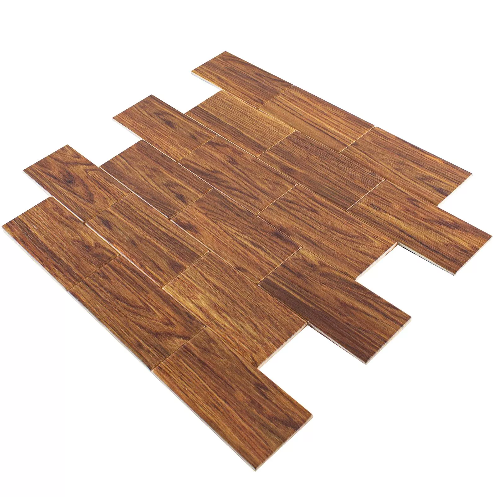 The Medusa mosaic tile in dark brown impresses with its elegant wood look and is made of robust vinyl. It is ideal for use on walls and is characterized by its self-adhesive properties, which enable quick and easy installation.