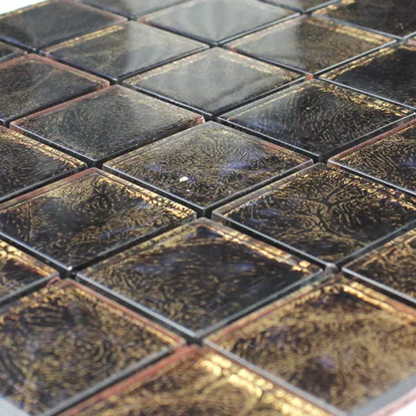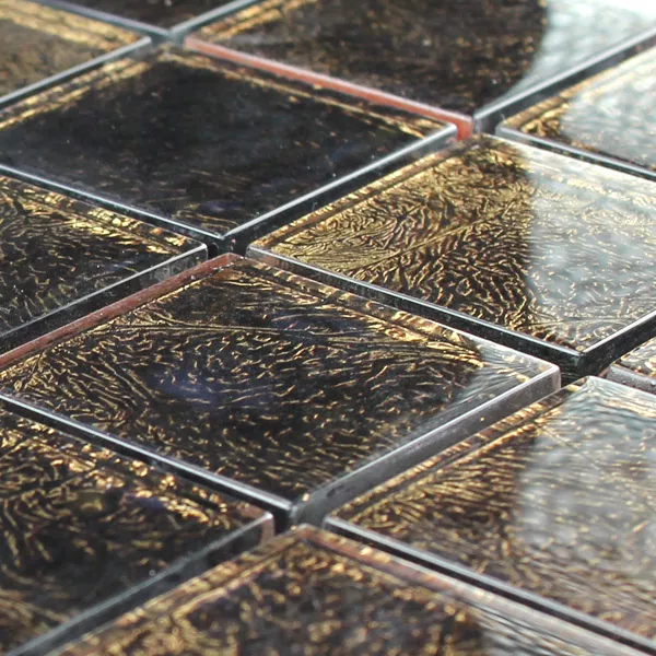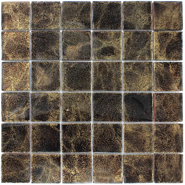 Mosaic Tiles Glass 48x48x8mm Brown Gold Metal