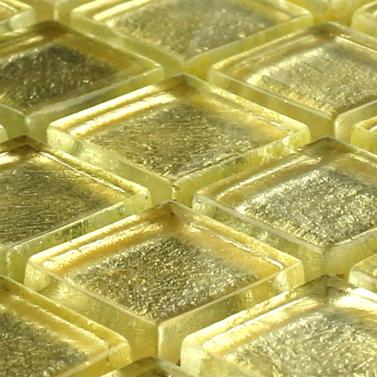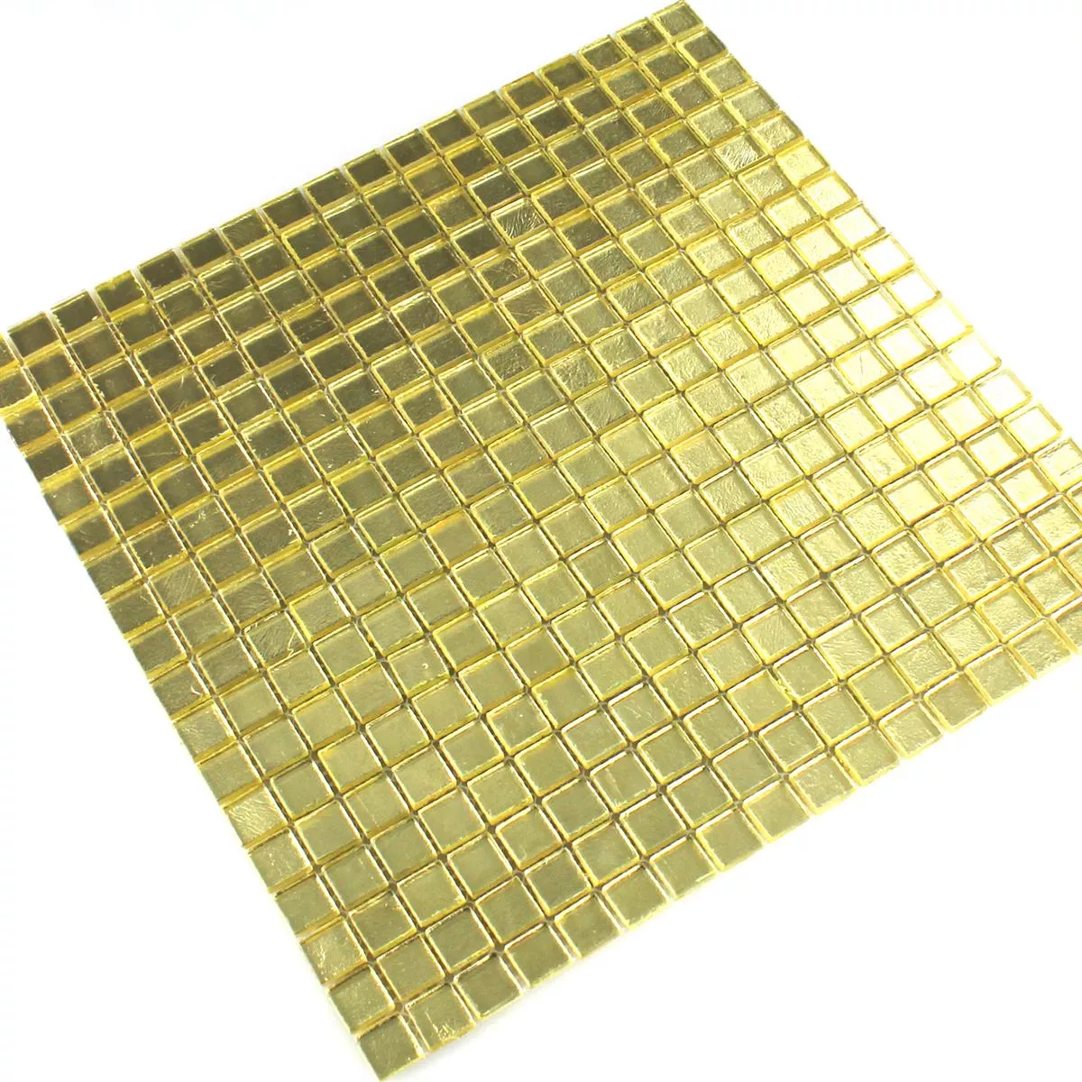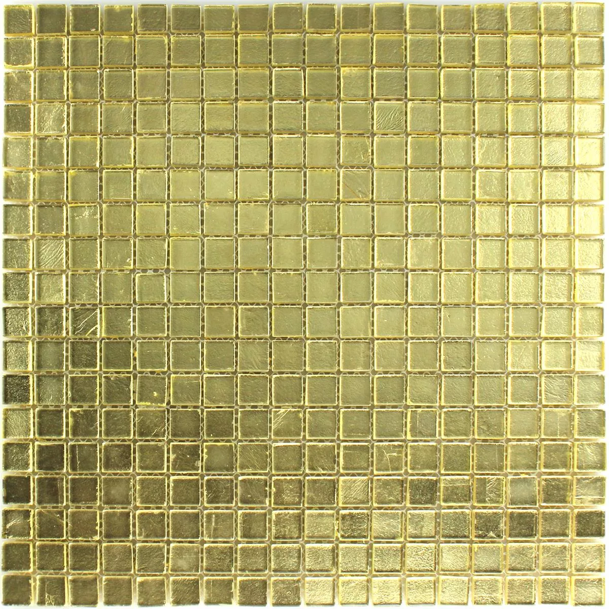 Properties of the Capone glass mosaic series The stone size of the Capone glass mosaic tile is 15x15mm. The surface of the stones is glossy. The glass mosaic tile Capone comes as a mat with a mat size of 30x30cm. The stones are made of glass with a thickness of 4mm. A mat of stones corresponds to an area of 0.090m². Color variants of the Capone glass mosaic series The Capone glass mosaic is gold in colour.