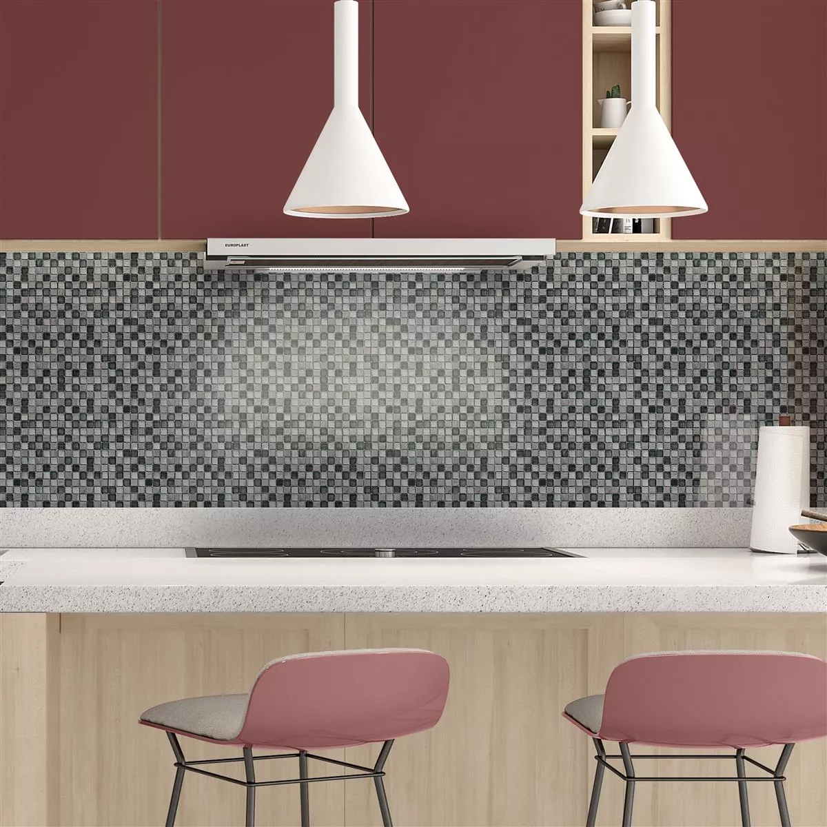 Flexibility: The use of glass mosaic tiles offers more flexibility in designing the space. It is possible to cut and combine the tiles in different shapes and sizes to create a tailor-made solution for every space.