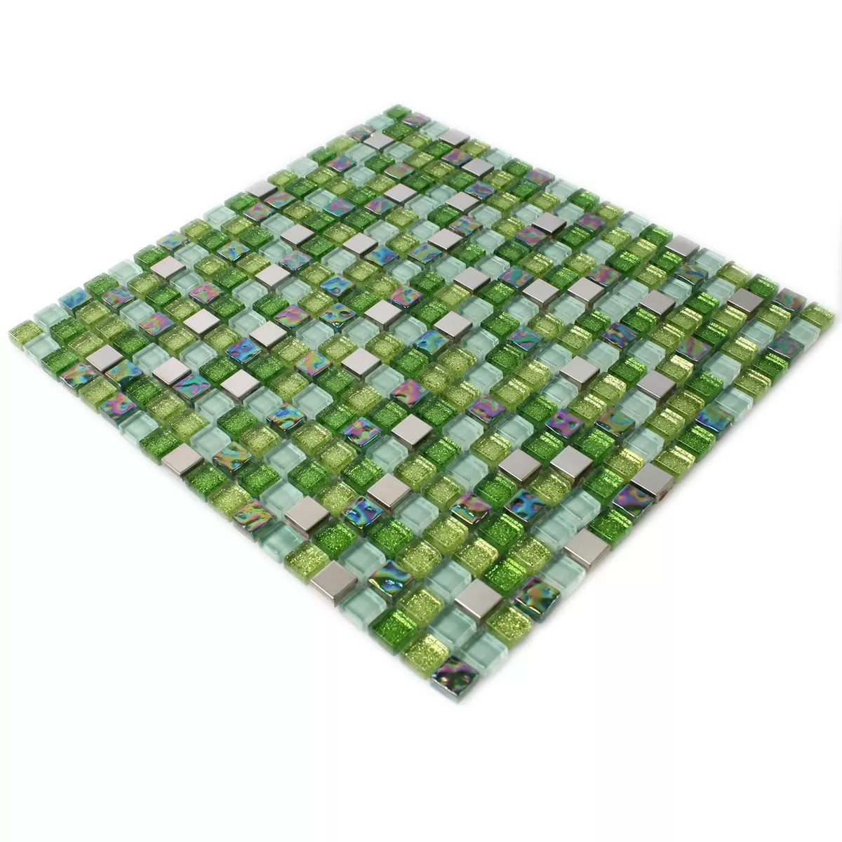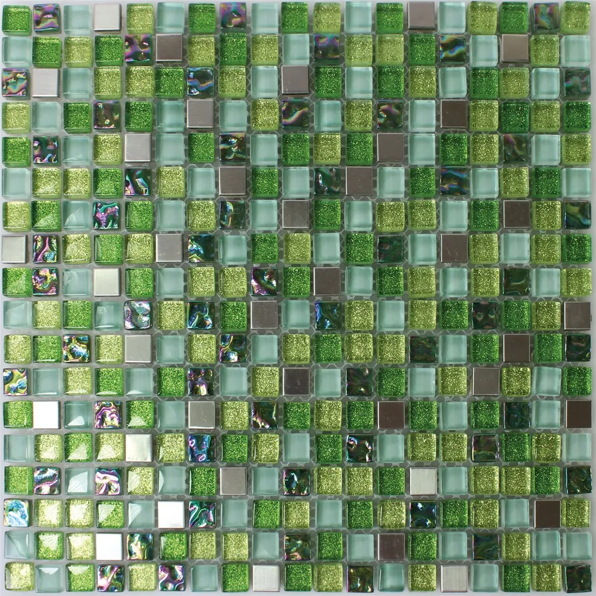 Mosaic Tiles Glass Stainless Steel Green Mix