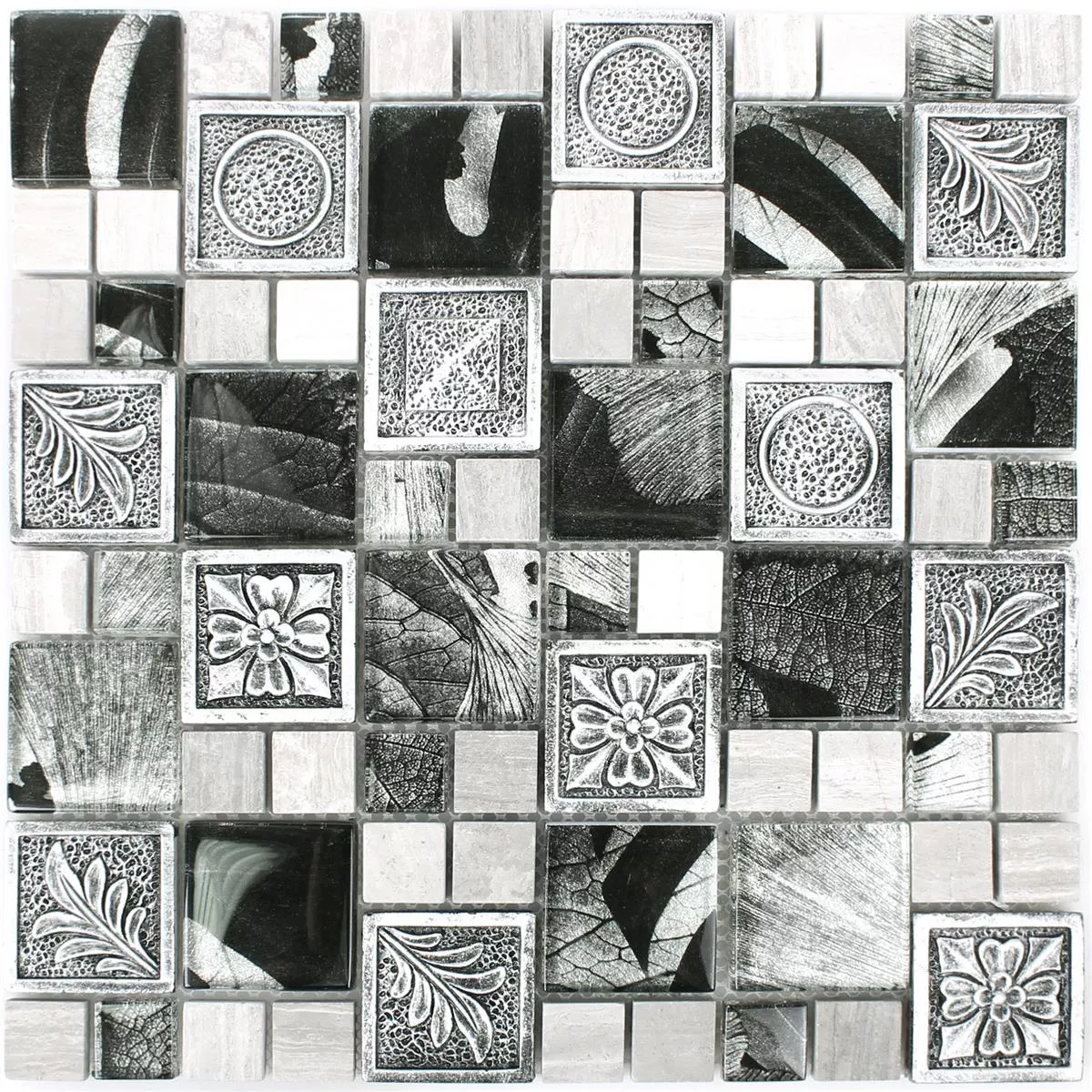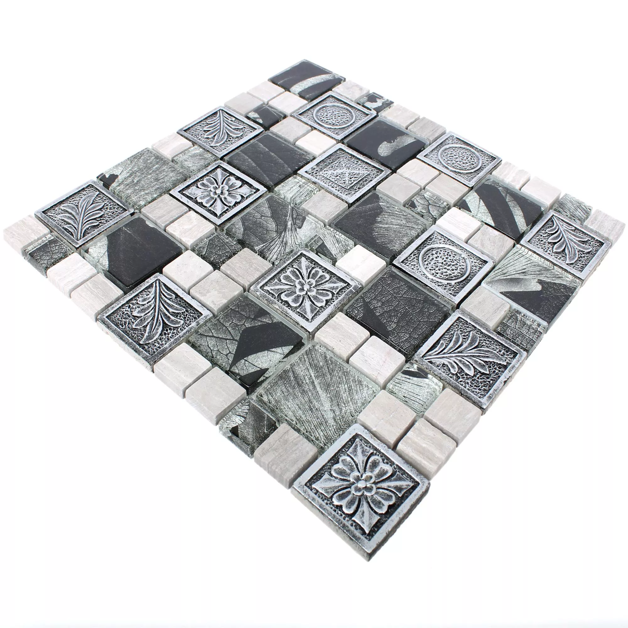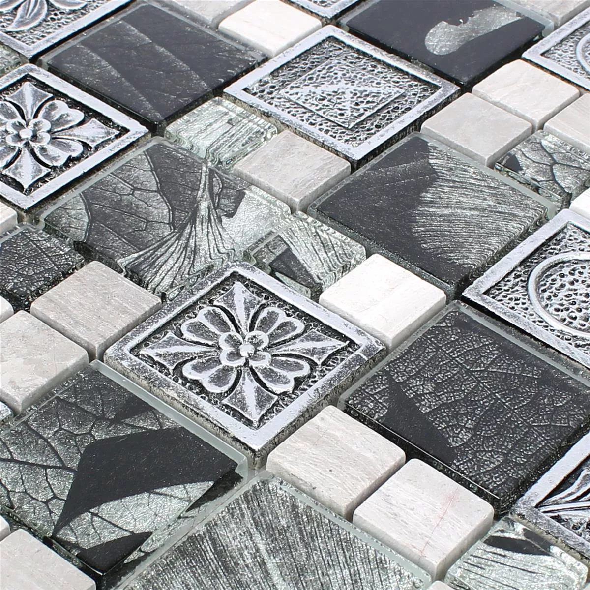 The Levanzo Glass Resin Ornament Mix Silver mosaic tile gives your covered terrace or living area a mystical and oriental look. They cover exactly this type of retro look that is very popular at the moment.