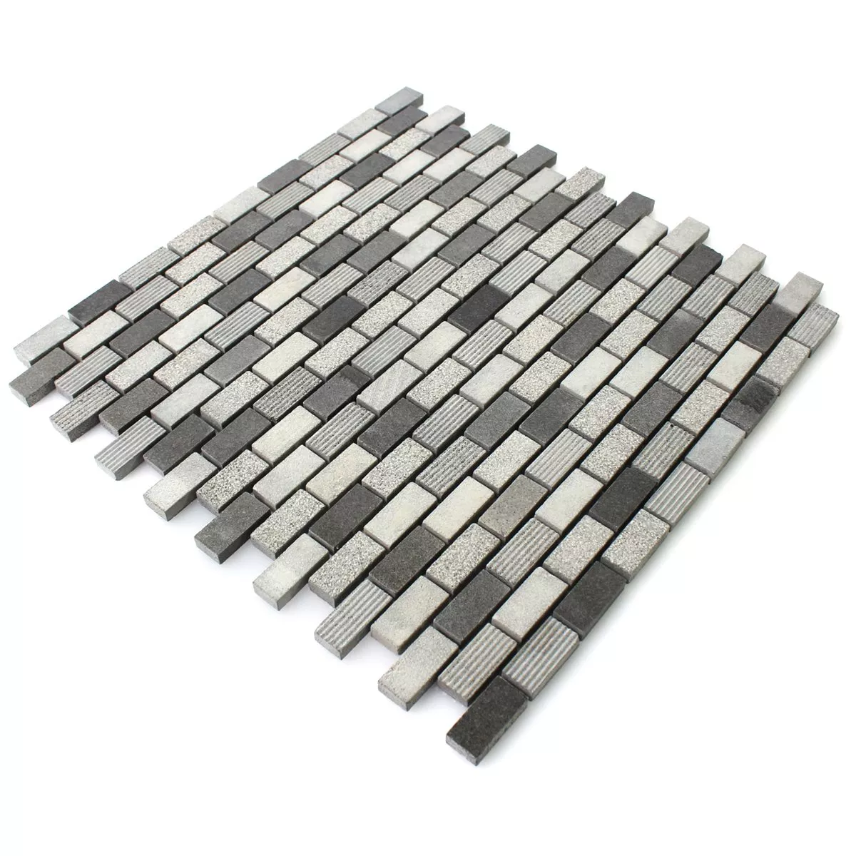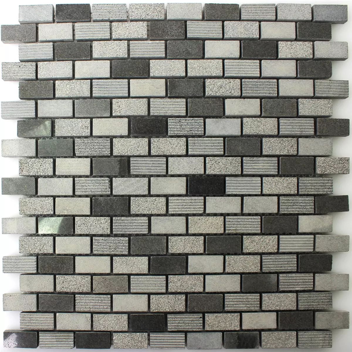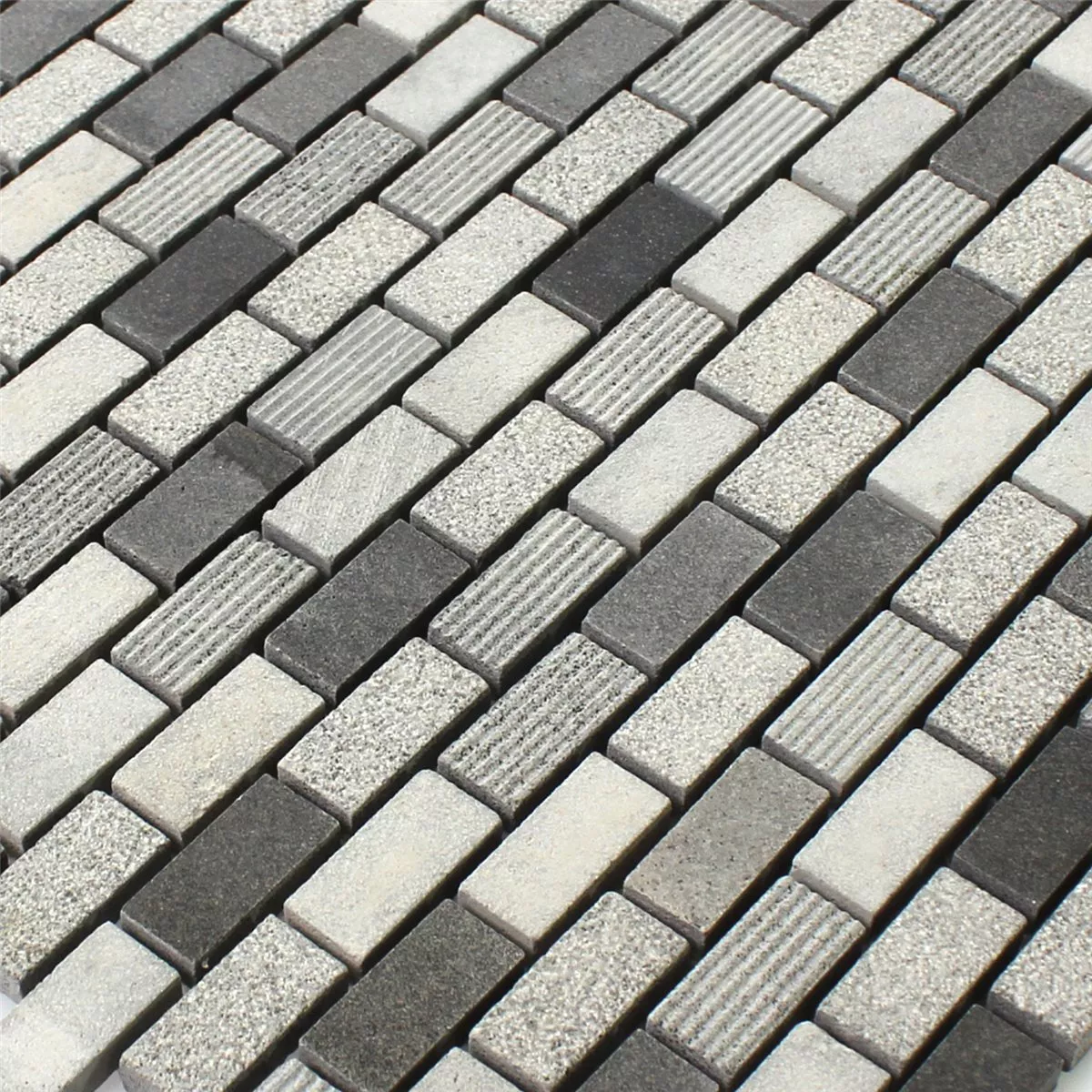 Mosaic Tiles Natural Stone Notte Anthracite 15x30x8mm