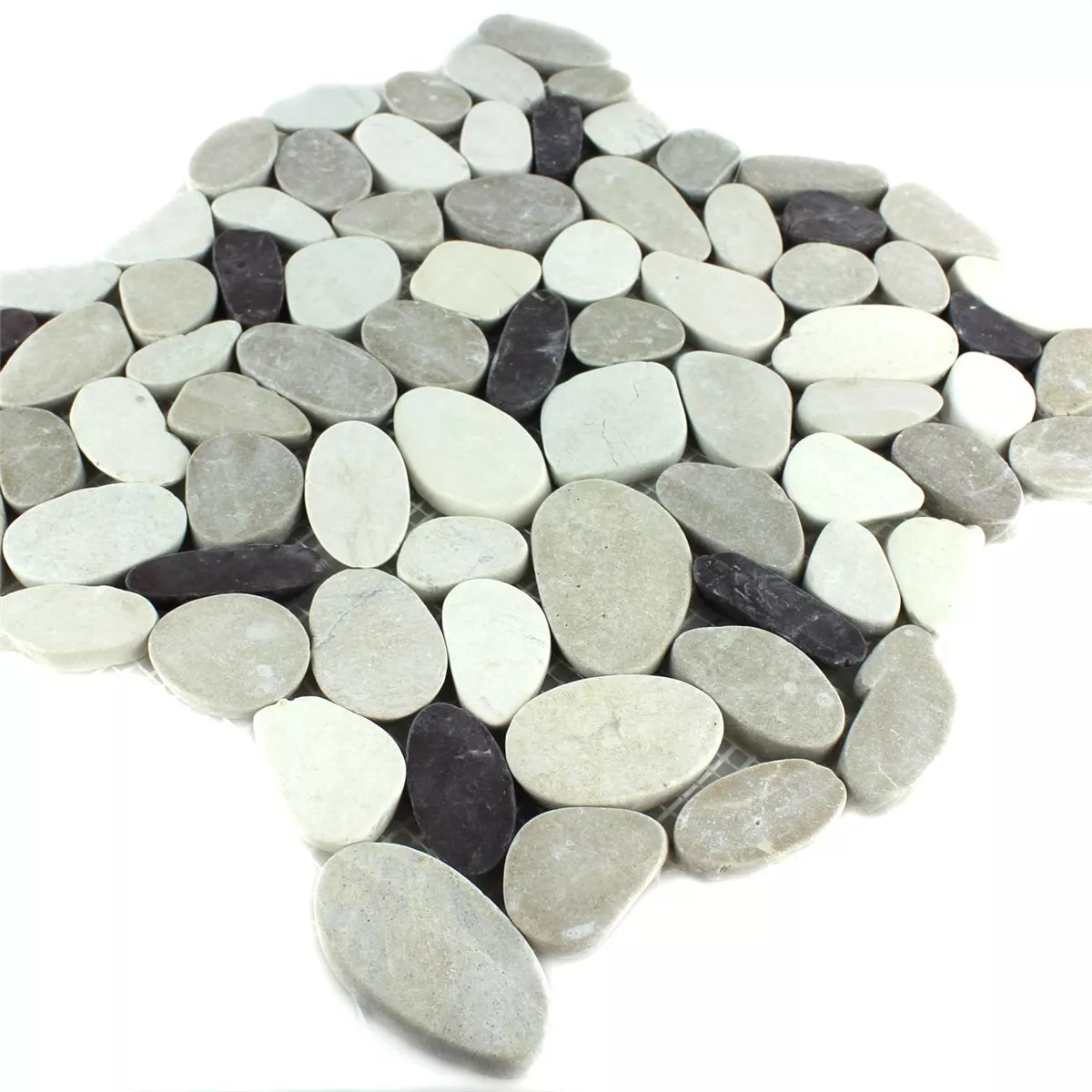 Mosaic Tiles River Pebbles Serrated White Beige Pink