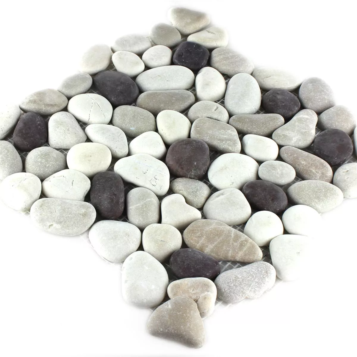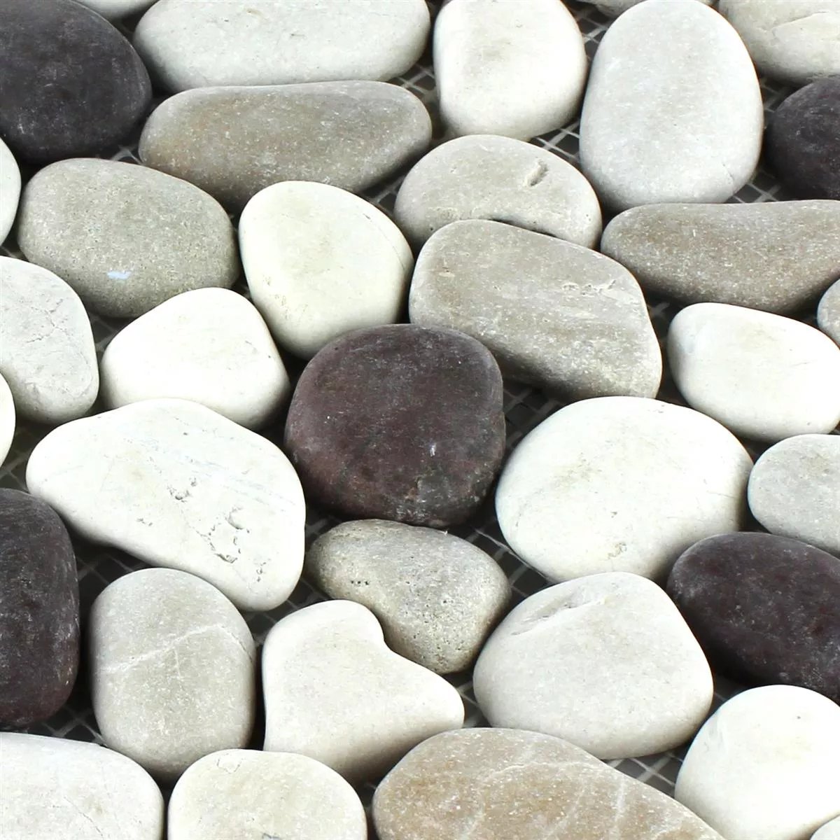 The mosaic tiles river pebbles Jambol are great pebble mats made of natural stones. The pebbles are fixed to the mats and can therefore be laid very easily. The natural stones are all different in size and natural. This means that there is a completely natural result after laying. The heights of the pebbles are not adjusted, which automatically results in an uneven surface.