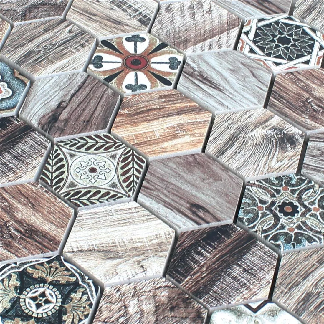 The natural stone mosaic tiles Cape Town wood look are available in light brown and beige. They give the impression of wood fibers, a brown wood look and have a matt and glossy surface, so that they look both rustic and classy.