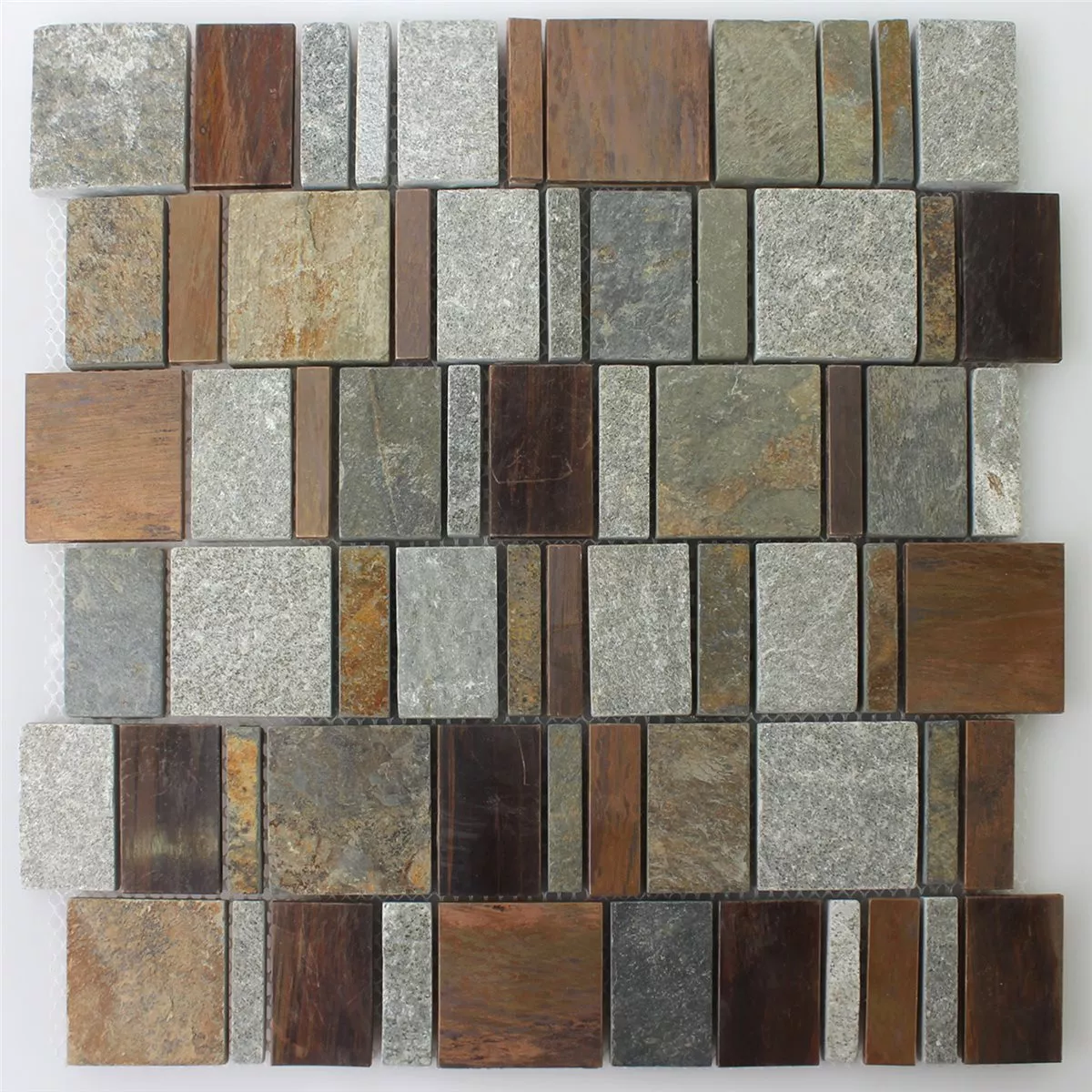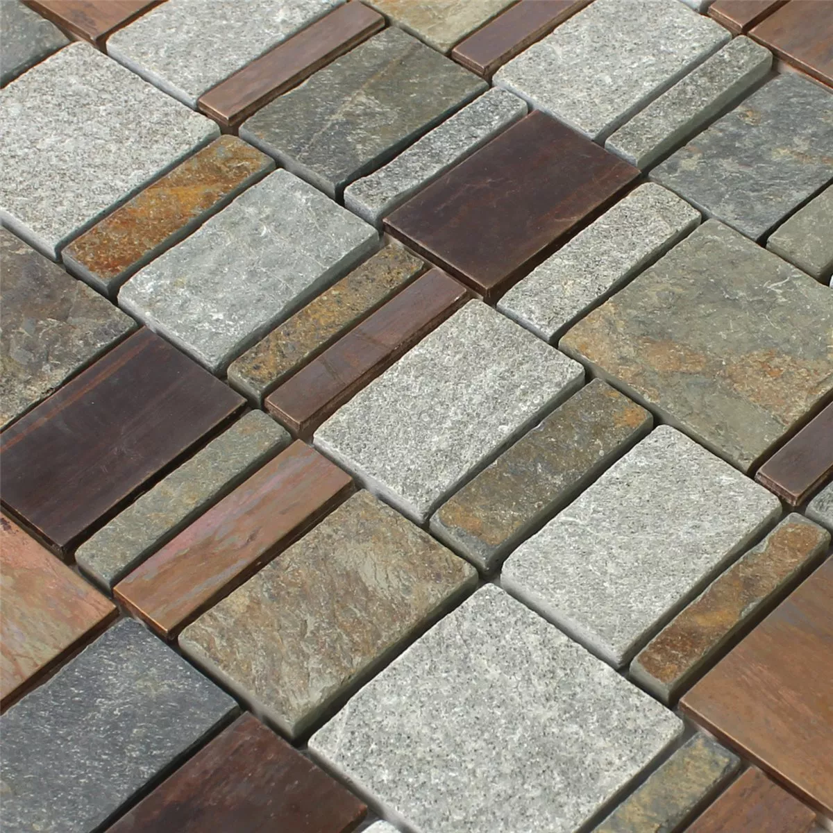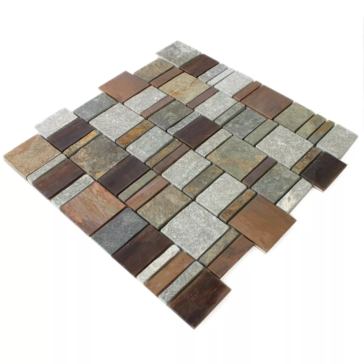 Natural Stone Quartzite Metal Aluminium Mosaic Tiles Topsail Copper Brown