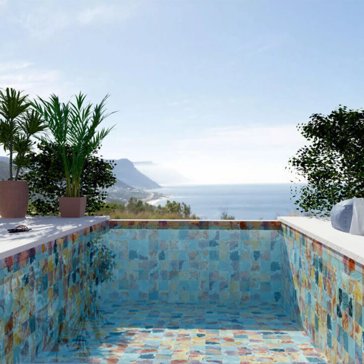 Transform your pool or living area into a stylish retreat with the Muskat porcelain stoneware swimming pool tiles. These durable and versatile tiles are the perfect choice for anyone who values quality and design.