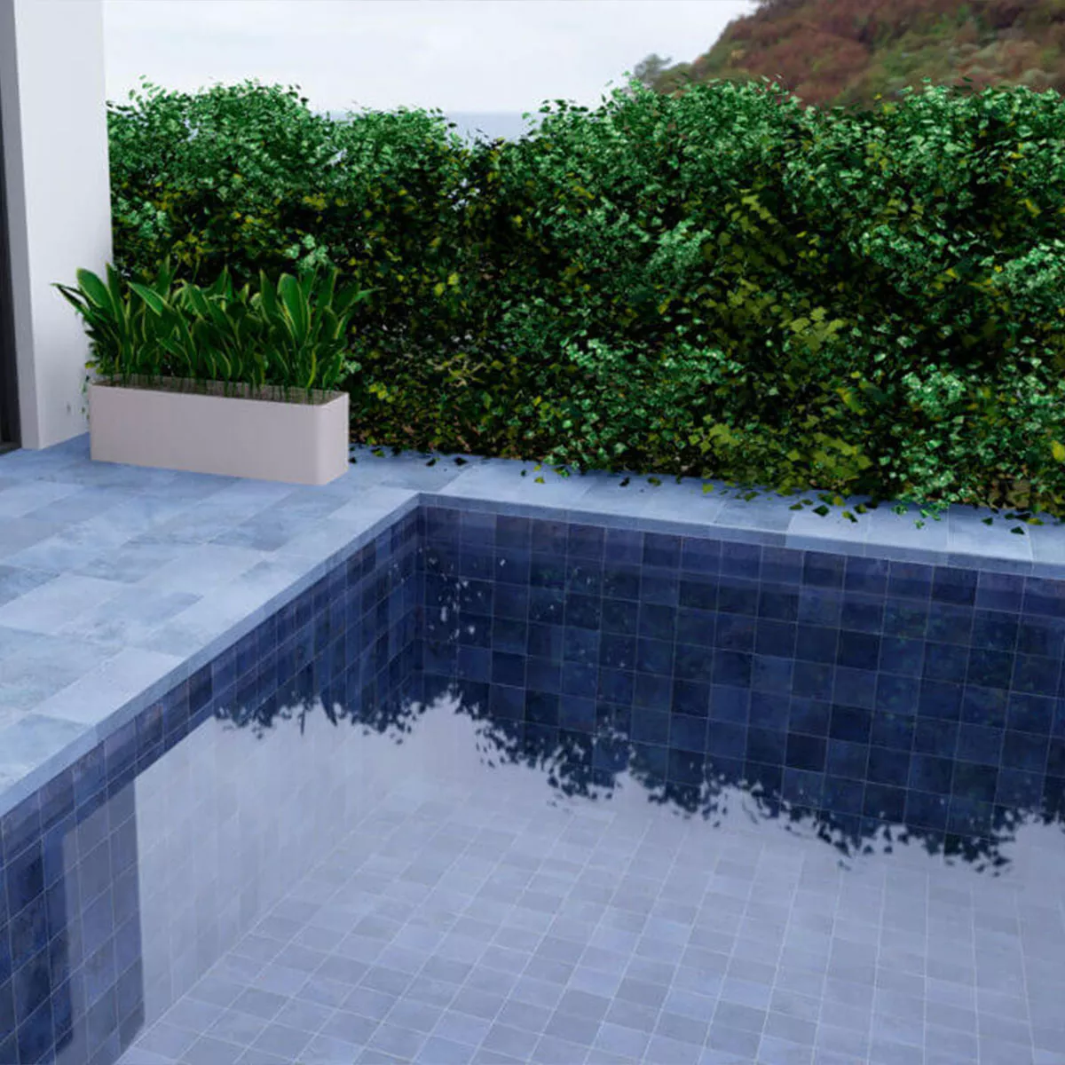 Porcelain Stoneware Swimming Pool Tiles Palencia Blue Square 15