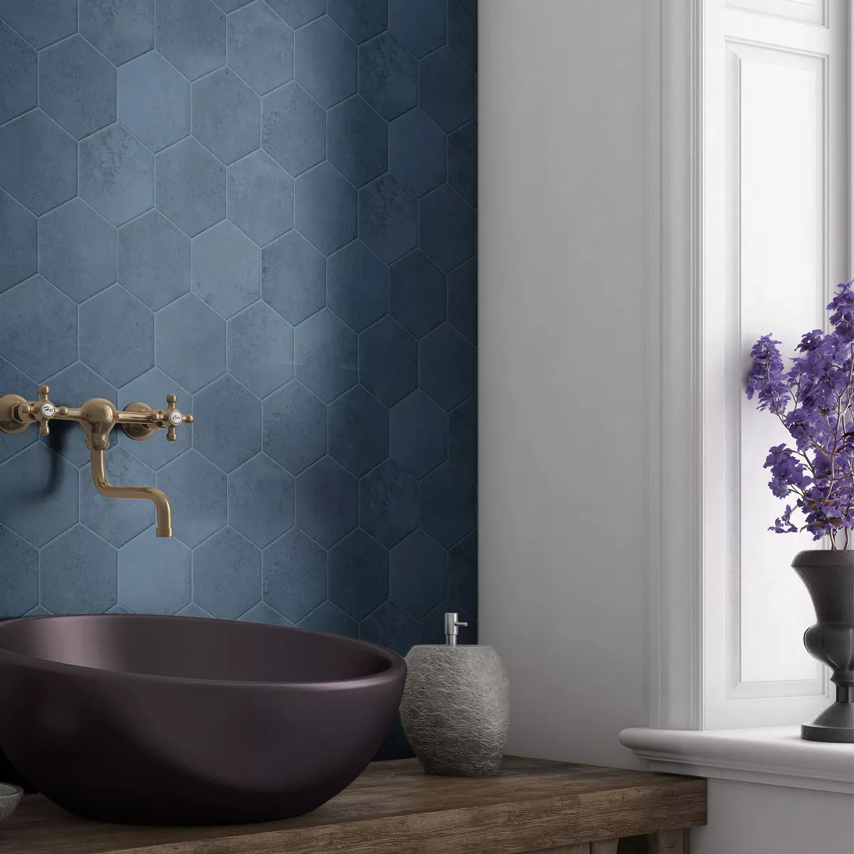 These exquisite dark blue porcelain tiles will add an elegant and modern look to your swimming pool, pool or other wet areas. The hexagonal shape measuring 22.5 x 25.9 cm creates a unique design.