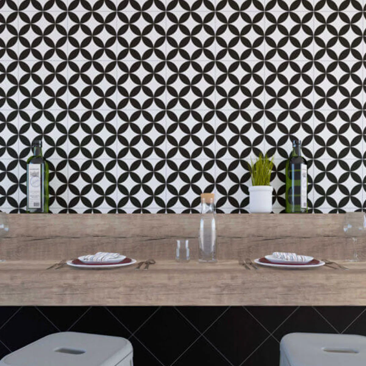 The Florentino Black porcelain stoneware tiles are the perfect choice for anyone who wants to add a touch of timeless elegance and modern sophistication to their home. These square tiles in the format 22.5x22.5cm are characterized by their stylish floral pattern and high-quality workmanship.