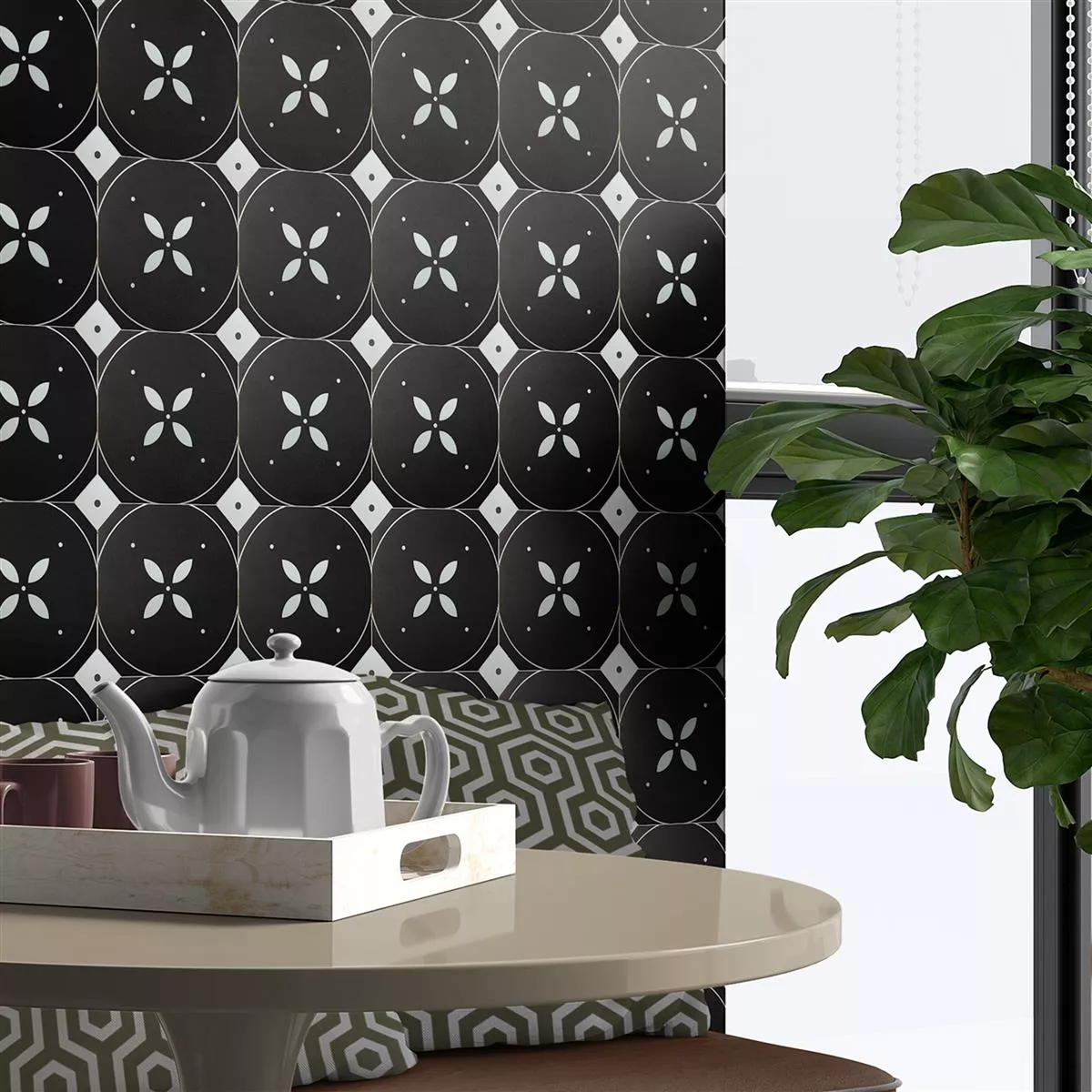 Whether in the kitchen, bathroom or living room - the Genexia Black White Decor 3 insert tiles combine style, functionality and durability to make your living space a place of beauty and comfort. Discover the versatility of these floor and wall tiles, which are characterized by their high-quality workmanship and timeless aesthetics.
