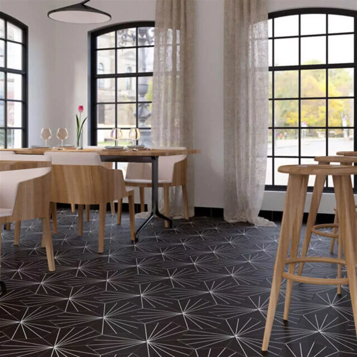 Discover the perfect combination of aesthetics and functionality with the Millennium Hexagon porcelain stoneware tiles in 3D black look. Be inspired by the modern elegance and high quality of these tiles.