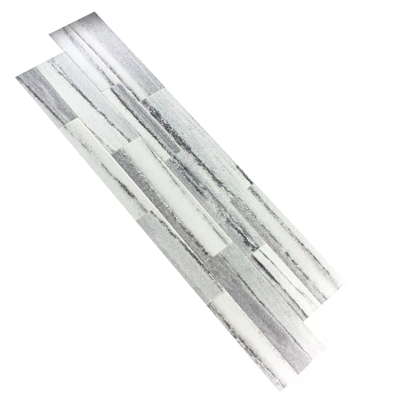 The Destina Gray self-adhesive wall covering is made of metal in a matte finish and has a tile size of 15,2x61cm. A mat has a size of 0.093 m² and is 5 mm thick. The look is a stone look and the property is self-adhesive. This is a wall tile in a rectangular format. It is suitable for indoor use, but not for wet areas. The self-adhesive Destina Gray wall covering is suitable for living rooms, kitchens and bathrooms.