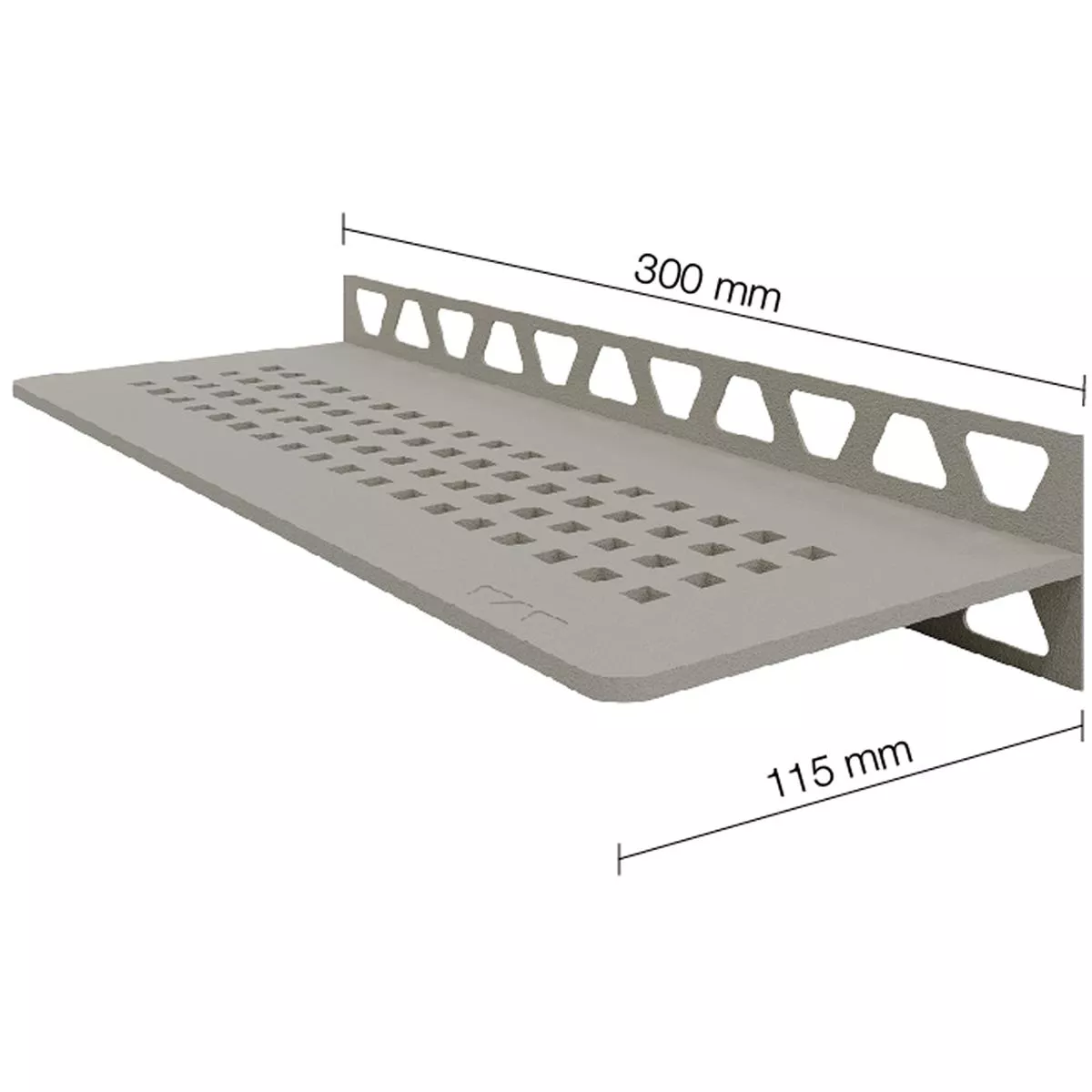 Rectangular wall shelf Whether in the bathroom or kitchen: The rectangular Schlüter-SHELF-W shelf can be used anywhere on the flat wall area where you are laying your tiles. Thanks to trapezoidal perforated mounting legs, the shelves are extremely stable and resilient, but at the same time they also impress with their modern look. You can not only choose between five attractive designs, but also between brushed stainless steel and aluminum, the latter of which is powder-coated in a popular TRENDLINE color or a MyDesign RAL color.