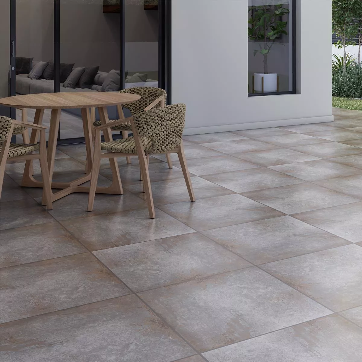 Give your outdoor area a modern and industrial charm with the Belfield porcelain stoneware patio tiles in metallic grey. These high-quality floor tiles are ideal for patios, balconies, walkways and a wide range of applications, both indoors and outdoors.