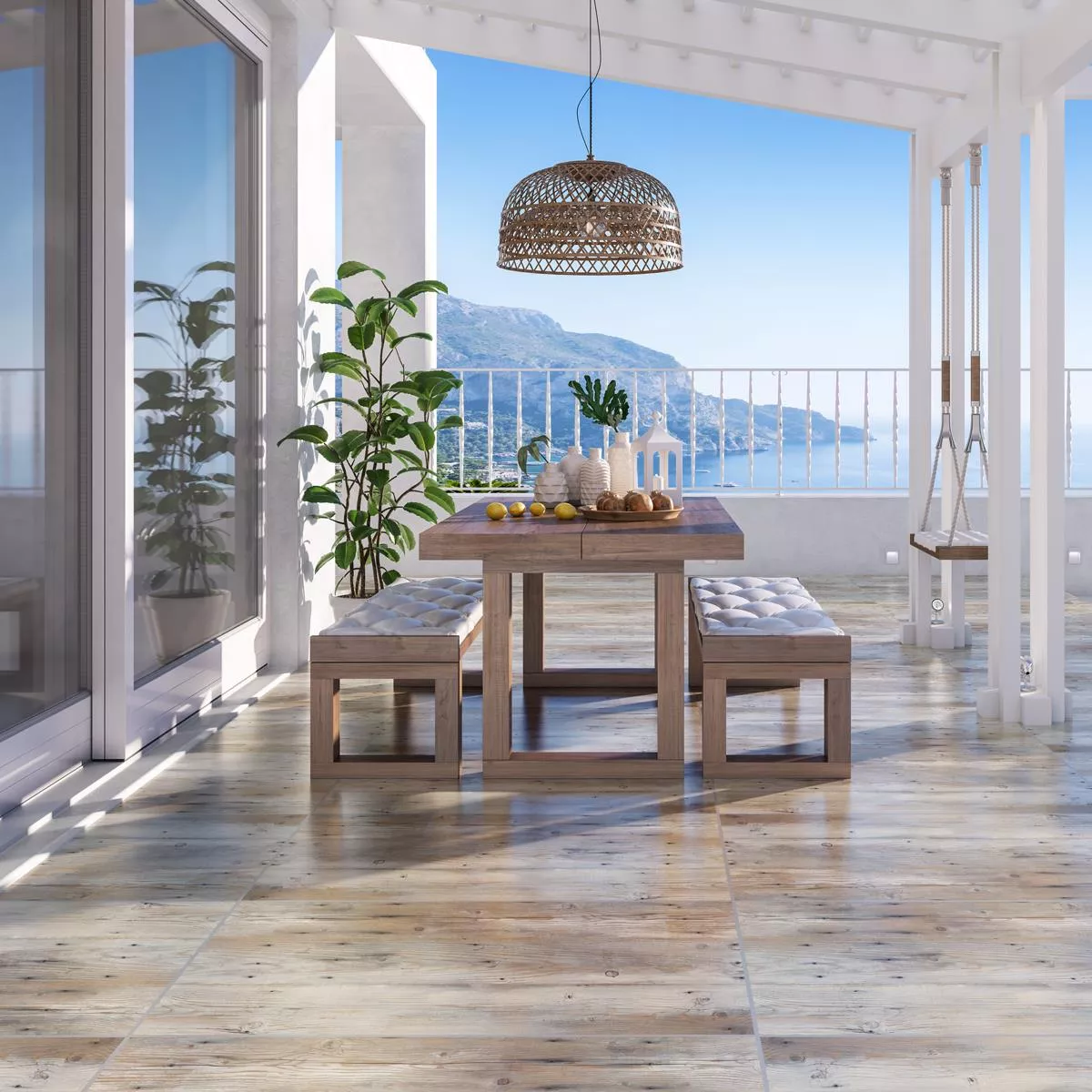 These tiles are made of high-quality porcelain stoneware, known for its durability and resilience. The matt, glazed surface provides an authentic wood look that looks great both indoors and outdoors. The abrasion resistance (abrasion class 4) and the slip resistance of R10 make these tiles particularly safe and durable.