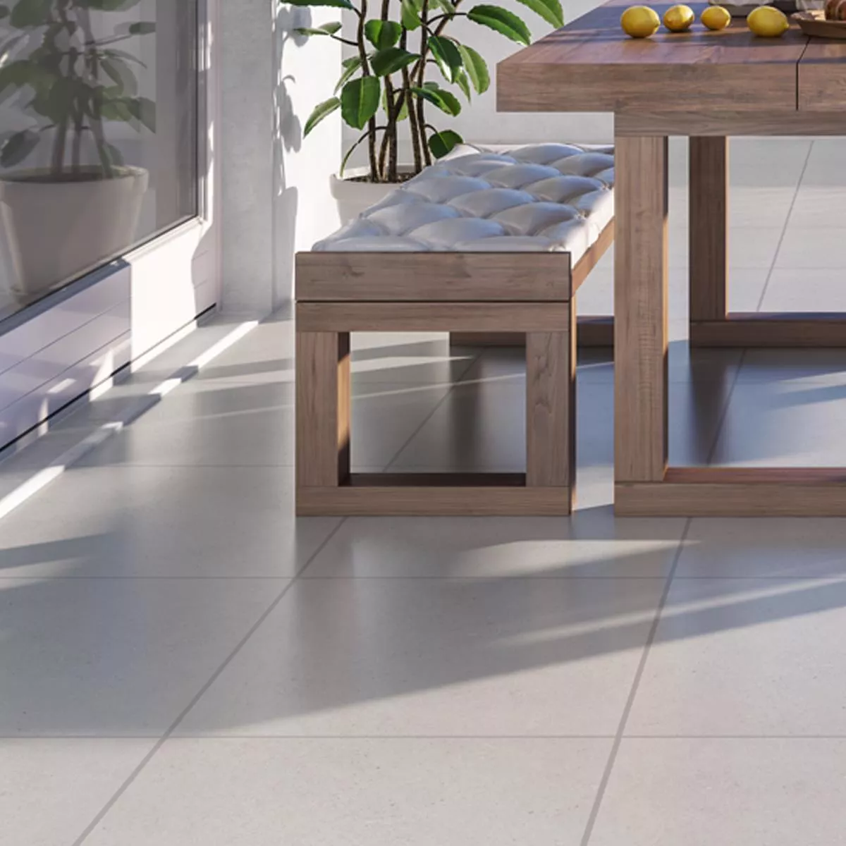 The Cremona patio tiles in beige combine the natural beauty of natural stone with the robustness of porcelain stoneware. In the classic 60x60cm format and a thickness of 2cm, they offer versatile application options for sophisticated designs.