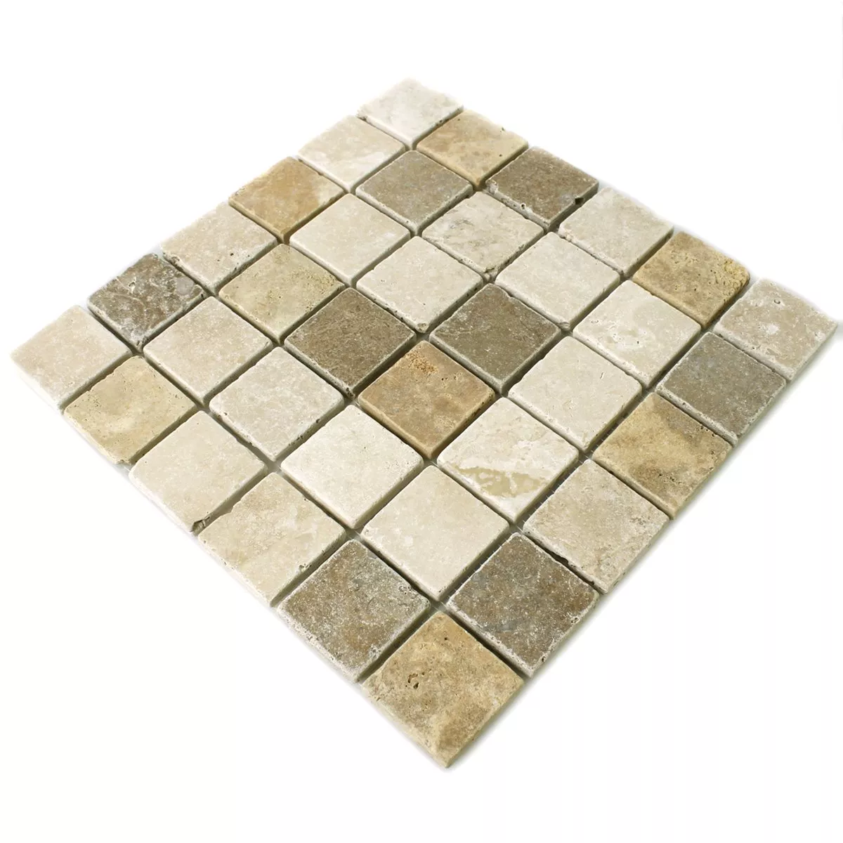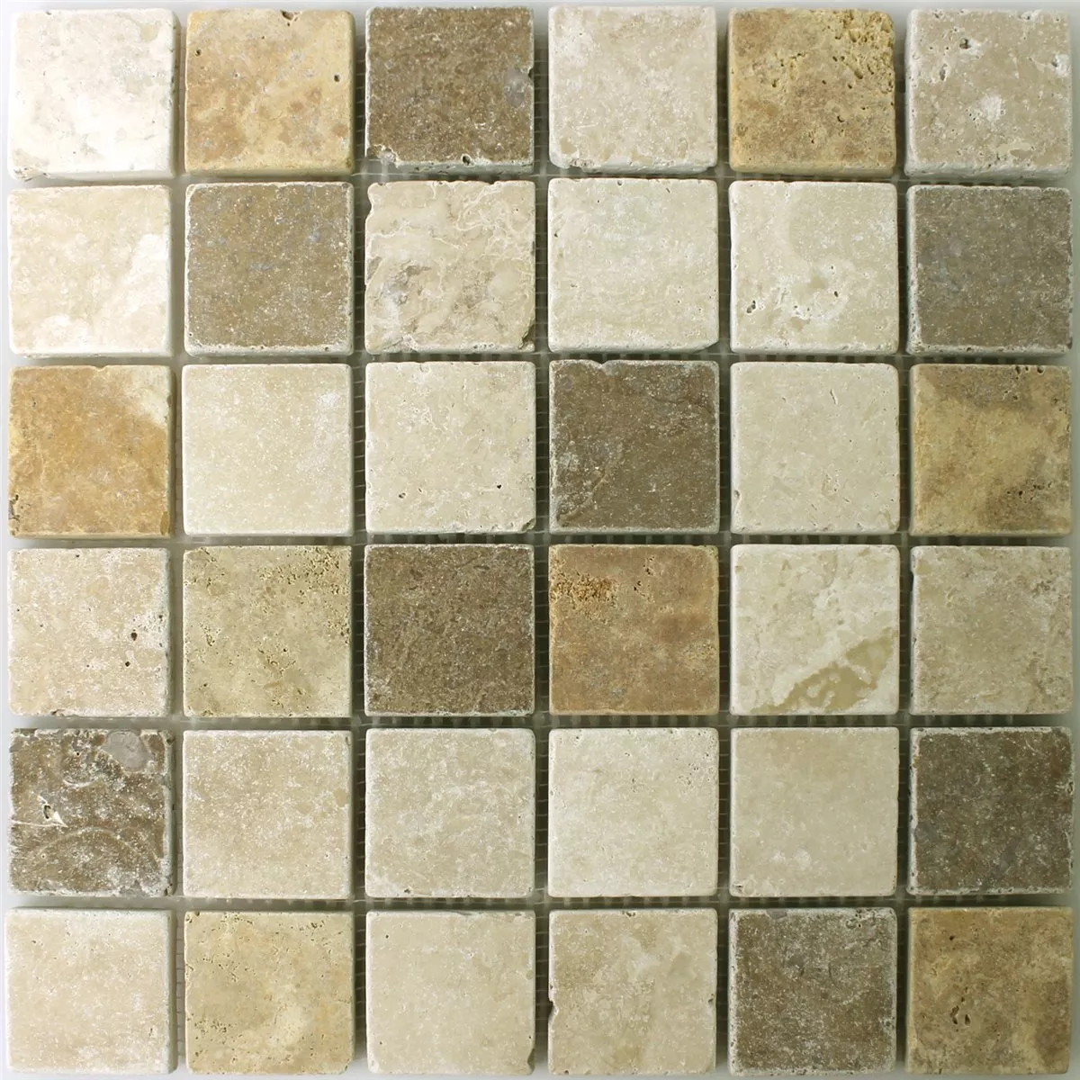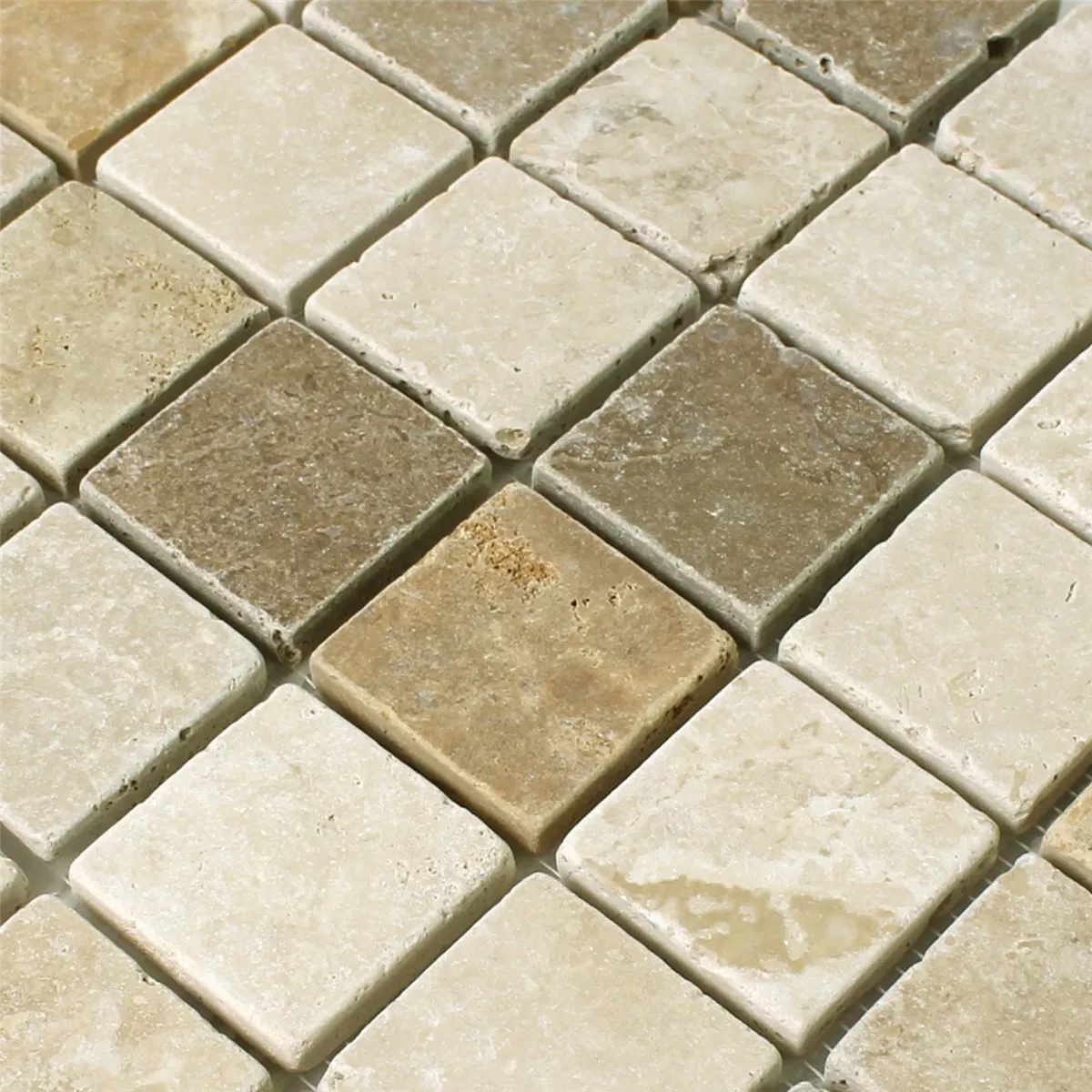 Travertine Mosaic Dustin Tiles Brown Beige Red