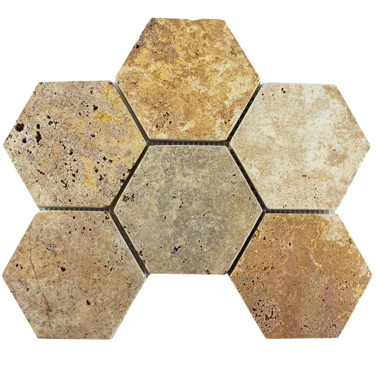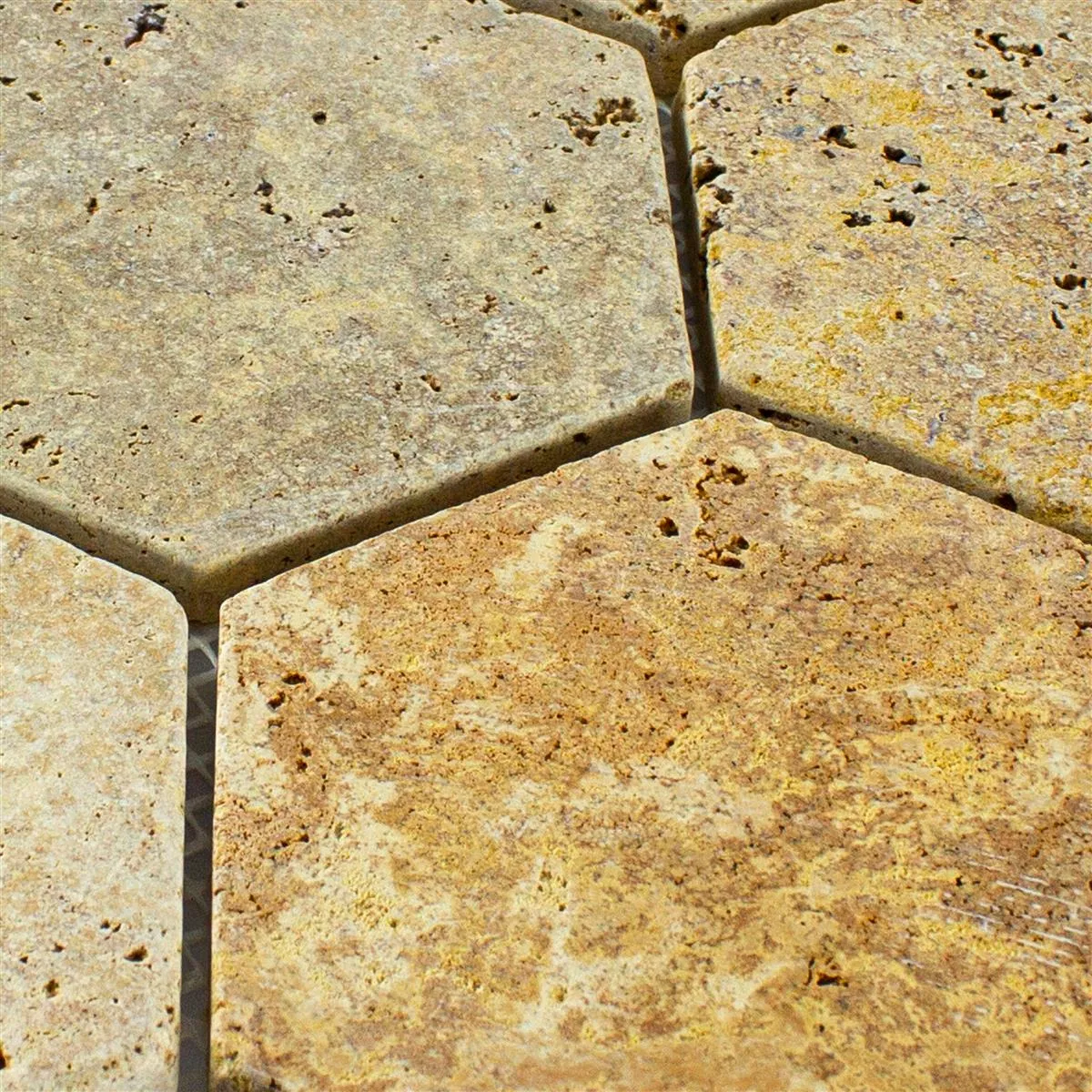 Travertine Natural Stone Mosaic Tiles Mercado Hexagon Gold