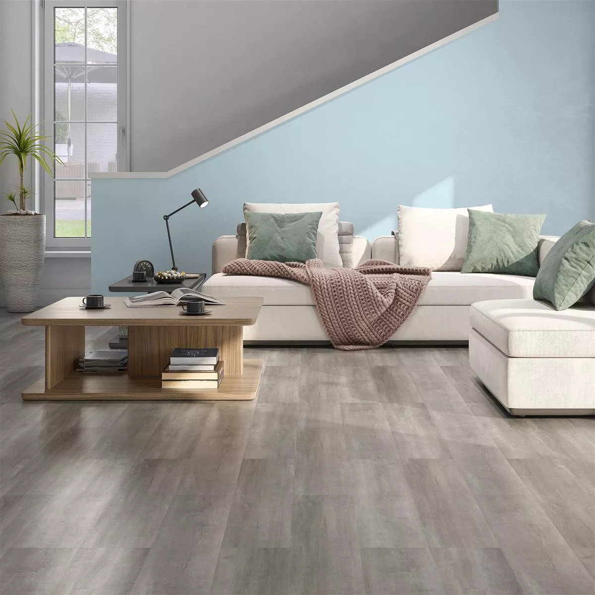 The Greywood vinyl floor in grey and light grey brings the natural elegance of a wood look into your rooms, combined with the practical functionality of vinyl. With a thickness of 5 mm and a rectangular format of 17.2 cm wide and 121 cm long, this floor covering not only offers an attractive appearance, but also high comfort and durability.