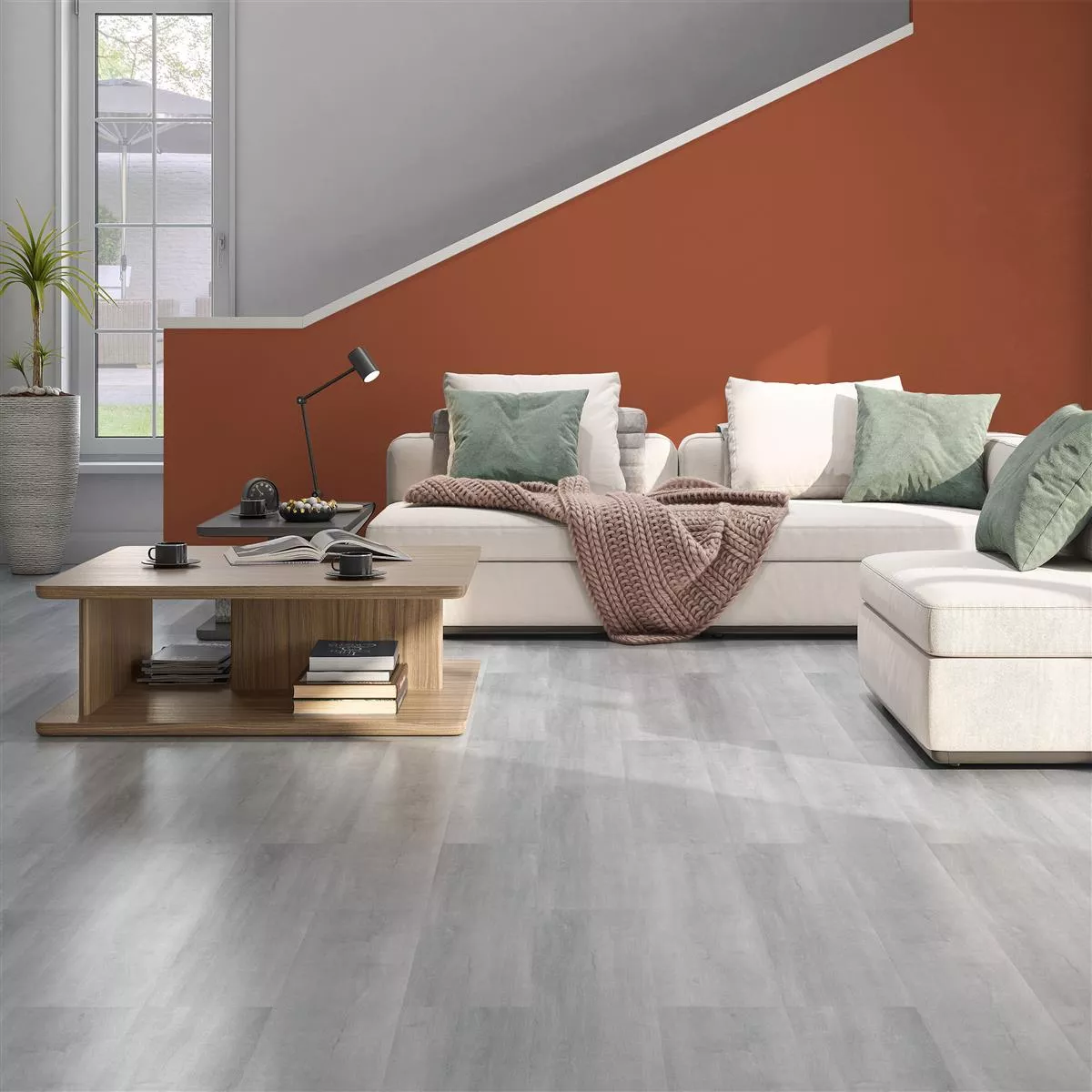 With a package size of 2.17 m², the Snowwood vinyl floor is ideal for both smaller and larger areas. The elegant grey and white tones create a bright, modern atmosphere and can be integrated into a variety of different interior styles. Ideal for all interior areas, including wet rooms, the Snowwood vinyl floor offers a perfect combination of stylish design and functional advantages.