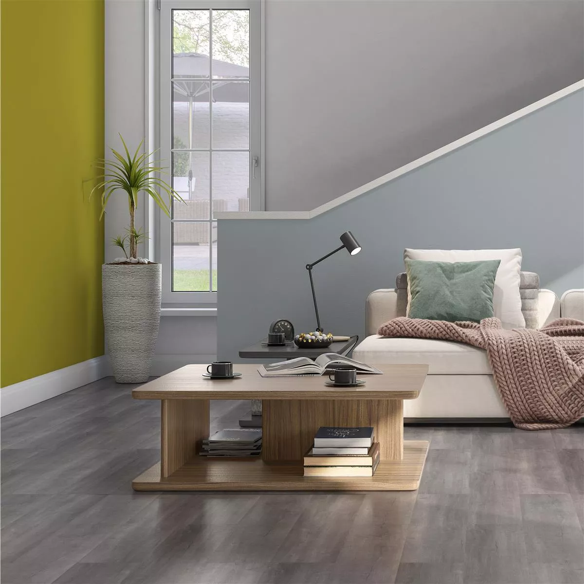 Our Woodburn vinyl floor in gray with a click system and integrated impact sound insulation impresses with its authentic wood imitation. The practical click system enables quick and uncomplicated installation. The vinyl floor is suitable for all living areas and is also waterproof.