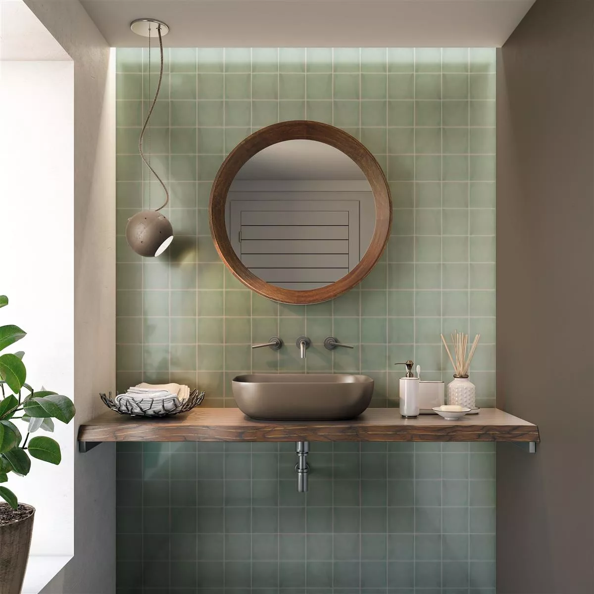 With its glossy, wavy surface, the tile creates fascinating light reflections and gives your walls a structured, stylish look. The thickness of 9.5 mm and the square format of 13x13 cm offer both robustness and flexibility when laying. The compact format allows for creative design options and is perfect for bathrooms, kitchens, wet areas, interiors, living rooms and showers.