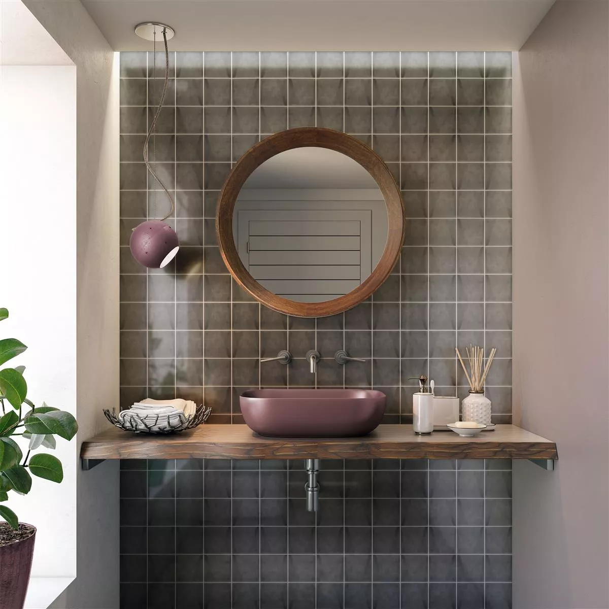 The Tamaris Eloy wall tile in dark grey brings an elegant yet robust vintage aesthetic to your rooms. This stoneware tile combines modern design with practical properties, ideal for versatile interior applications.