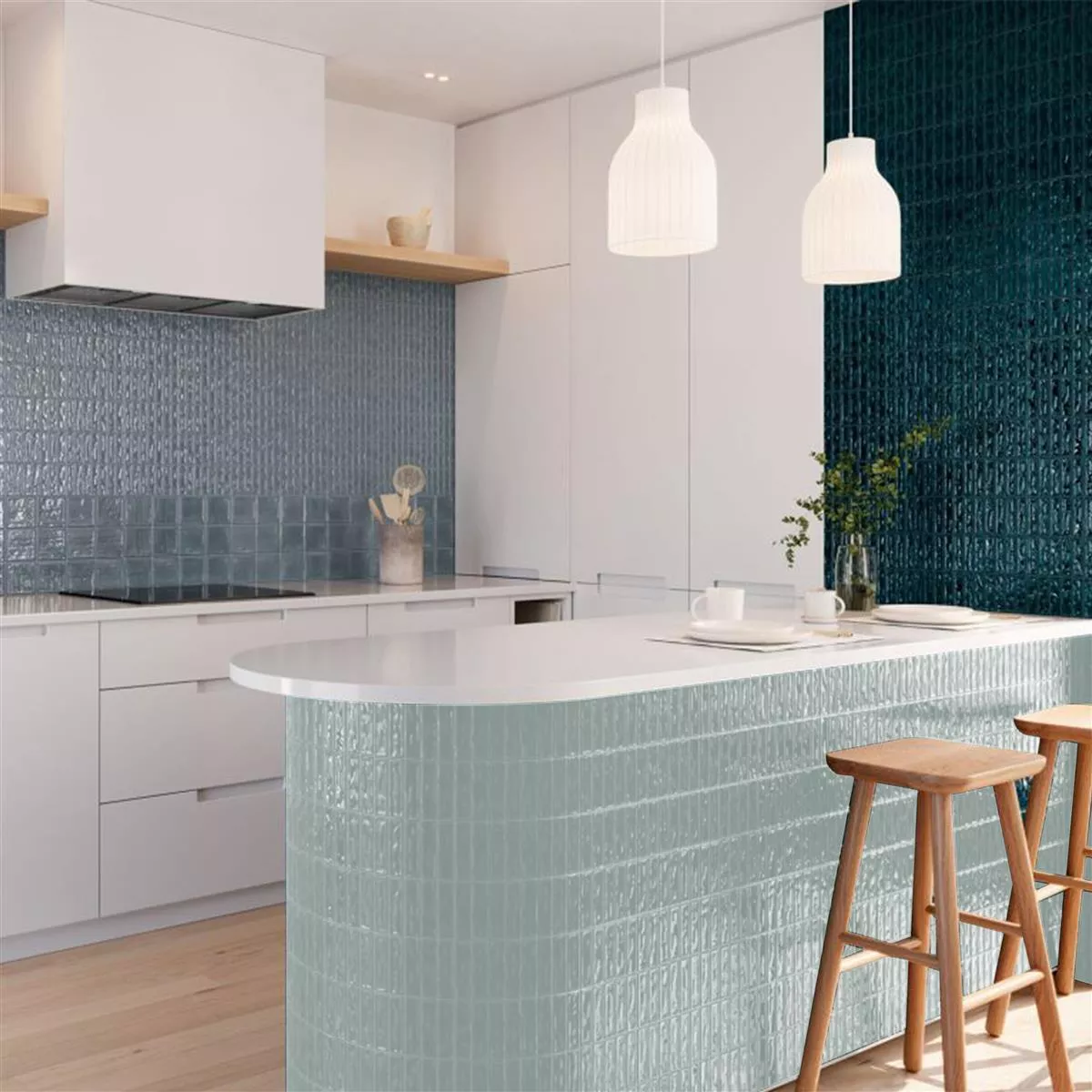 Wall Tiles Verbania Sticks Glossy Waved Cyan 20x20cm