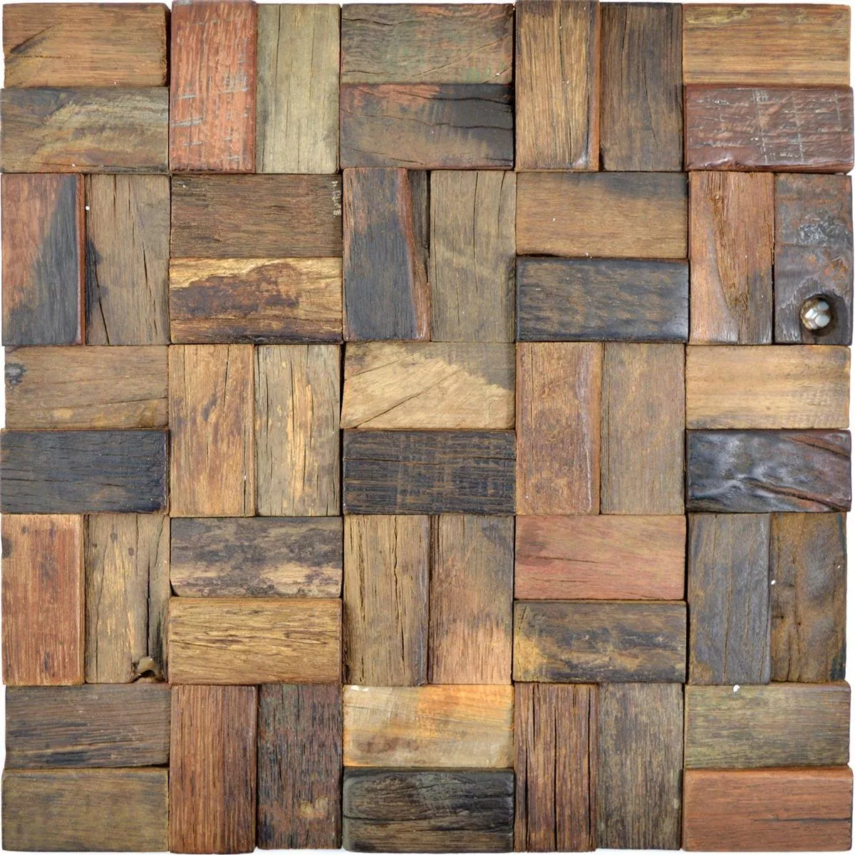 Wood Mosaic Tiles Bredon 3D Brown Rectangle